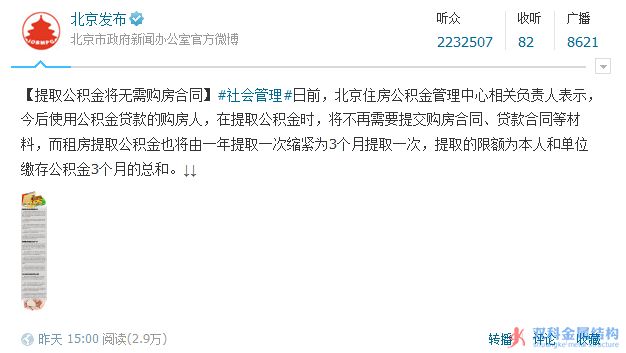![]() ![]() ![]() ![]() 昨日,北京商報記者從“北京發布”官方微博獲悉,市住房公積金管理中心歸集執法處處長呂志民日前表示,今后使用公積金貸款的購房人,在提取公積金時,將不再需要提交購房合同、貸款合同等材料。此外,本市租房提取公積金今后也將由一年提取一次,縮短為三個月提取一次,提取的限額為本人和單位繳存公積金三個月的總和。 據介紹,此前,使用公積金貸款購房的家庭,在提取公積金時,需要提交購房合同、貸款合同、購房發票等種類繁多的材料,“今后,這些家庭只需提供提取申請書、本人身份證及復印件,以及銀行儲蓄賬戶,就可以辦理公積金提取”。呂志民解釋稱,這是因為公積金中心可以通過現在的貸款系統直接獲取購房人所有的貸款資料。 呂志民還表示,目前租房提取公積金存在大量的弄虛作假情況,過去是用假發票和假合同,后來演化為買真發票。針對這一狀況,此次新政策明確了租房提取公積金的時限和提取的限額。然而,對于社會上越來越多的、有關上調公積金貸款額度的呼聲,公積金中心其他相關負責人回應稱,公積金中心將根據北京房地產市場的變化,統籌考慮這些原則,實時地進行正常調整,目前暫時不具備調整的條件。 |