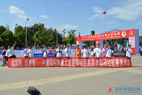 5月25日,2014年高原國際半程馬拉松賽在昆明拉開序幕。中建鋼構昆明片區項目青年代表隊激情赴賽,將建筑人艱苦卓絕的戰斗精神帶到了比賽的賽場上,一展中國建筑鐵軍風采。( 邊小晶)