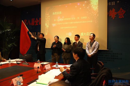 11月14日下午,由北京市建設工程物資協會建筑鋼結構分會和天津市鋼結構學會共同舉辦的第八屆全國省際鋼結構行業組織經濟技術協作會在北豐大京國際酒店成功召開。 會議結束后由由北京市北京市建設工程物資協會建筑鋼結構分會秘書長常佳偉與福建省建筑業協會金屬結構與建材分會會長鄒魯建進行換屆交接旗儀式,接過旗子的鄒魯建會長表示:“我總覺得我們創辦的省際聯誼不容易,我們所有的各個省參與這個聯盟的,應該都要捍衛這個勞動成果。共同努力把中國的鋼結構打造成中華民族的脊梁,因為我們這些在座的各位代表行業也代表我們未來在全世界再創一個鋼結構的強國而努力奮斗。”第九屆全國省際鋼結構行業協(學)會峰會將在福建舉行。