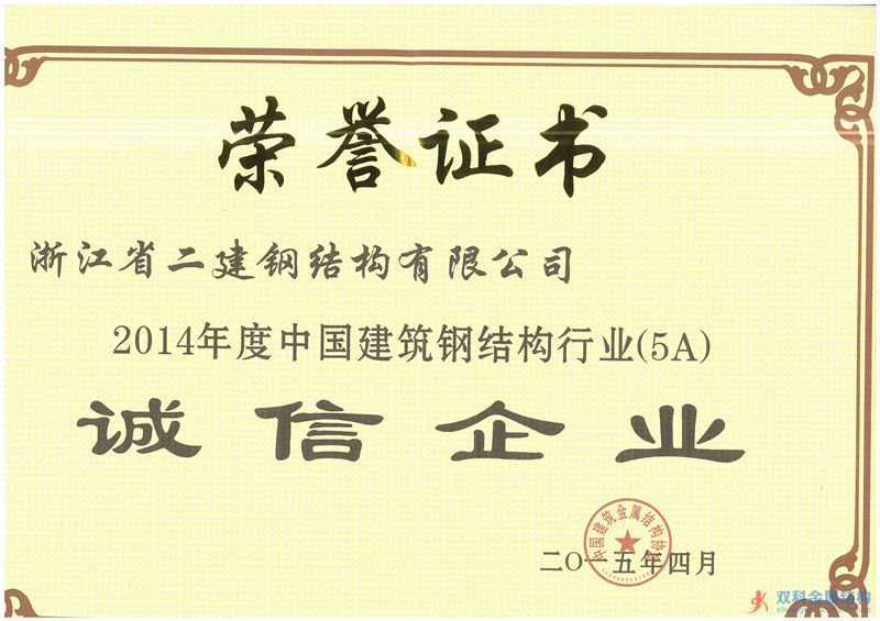 浙江省二建鋼結構公司獲“2014年度中國建筑鋼結構誠信企業”